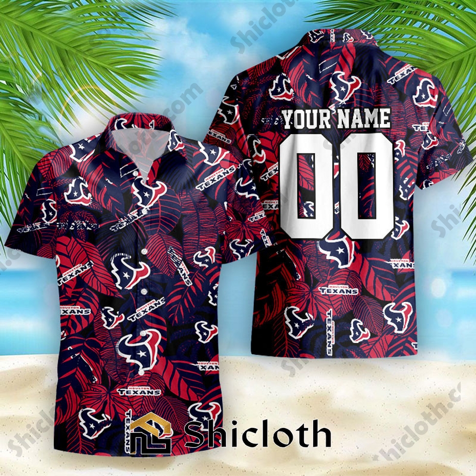 Houston Texans Custom Name And Number NFL New Summer Hawaiian Pattern Shirt
