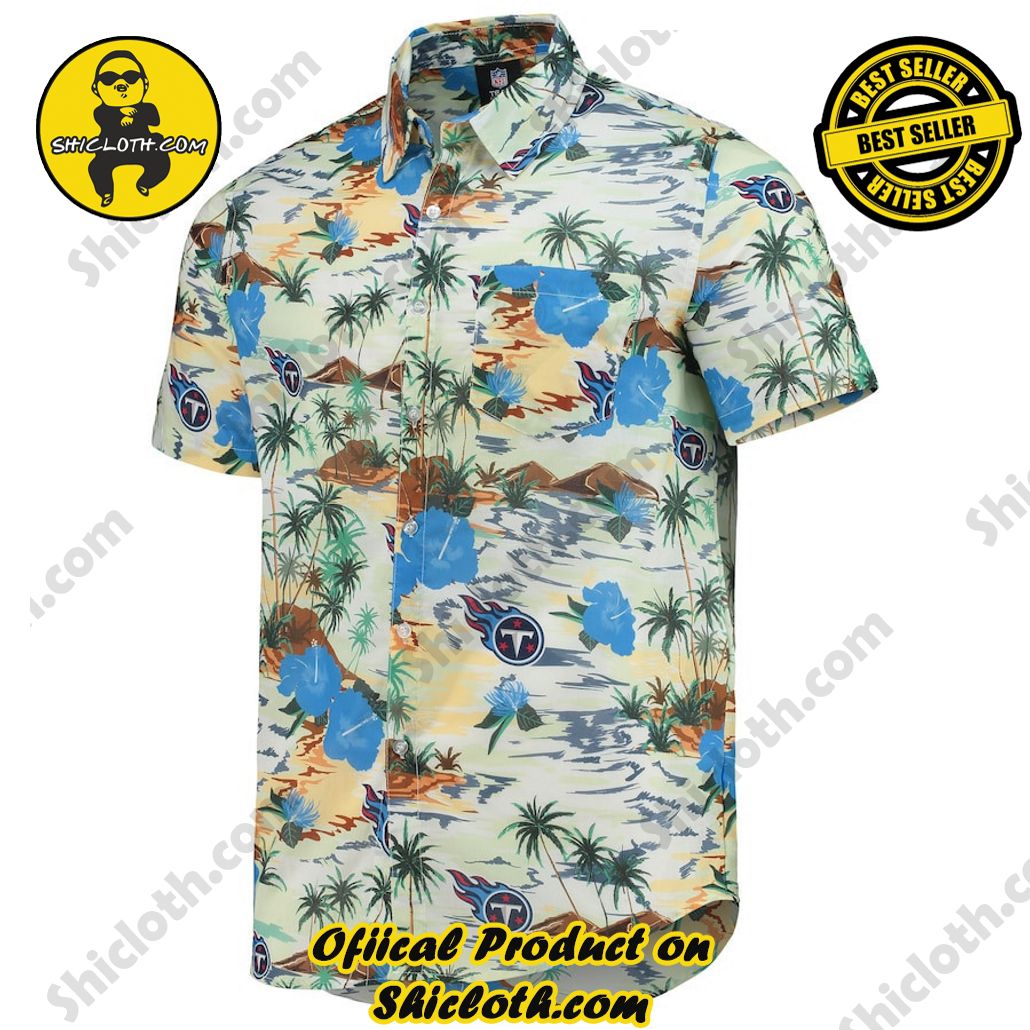 Tennessee Titans Cream Paradise Floral Button-Up Hawaiian Shirt
