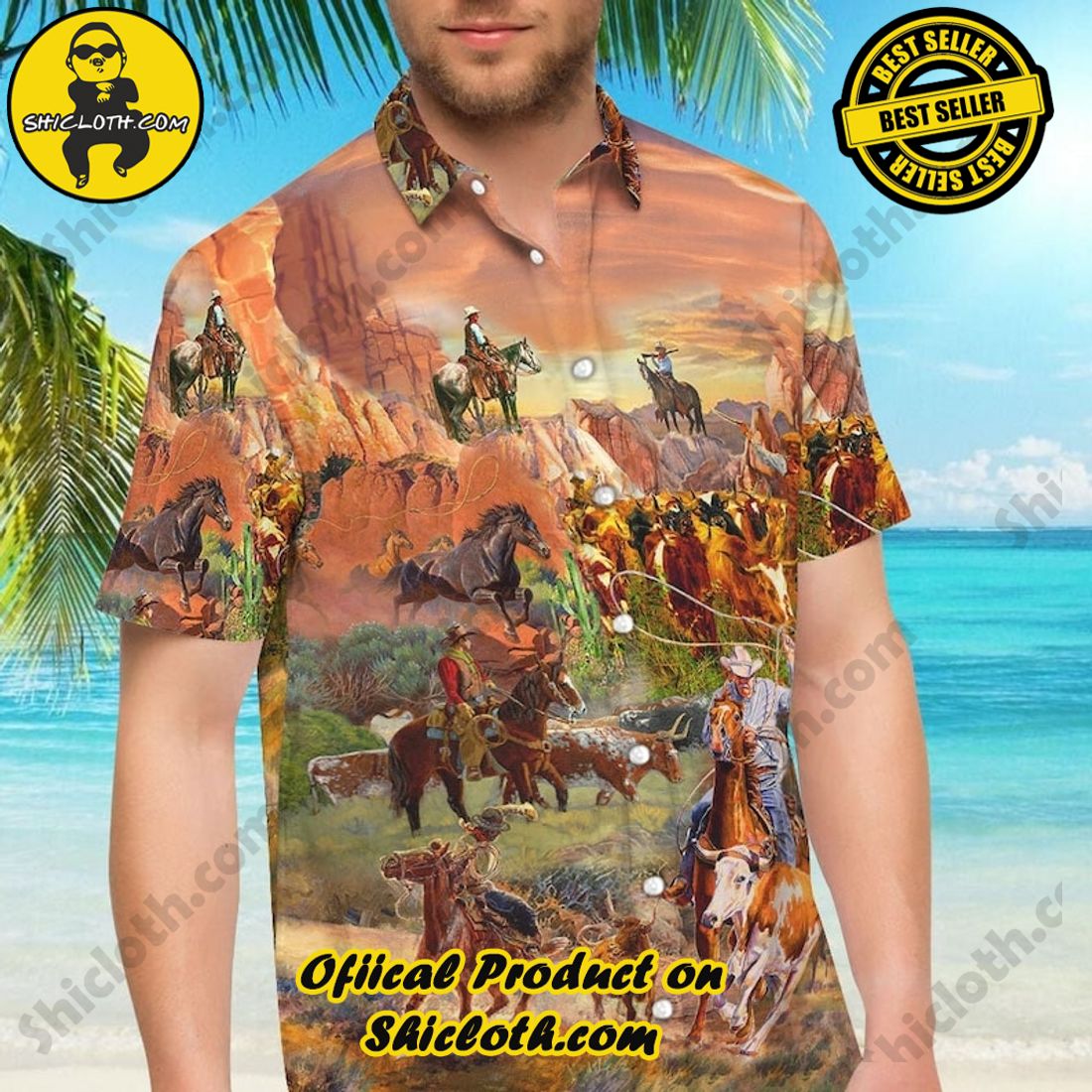 Cowboy Riding Horse Vintage Hawaiian Shirt