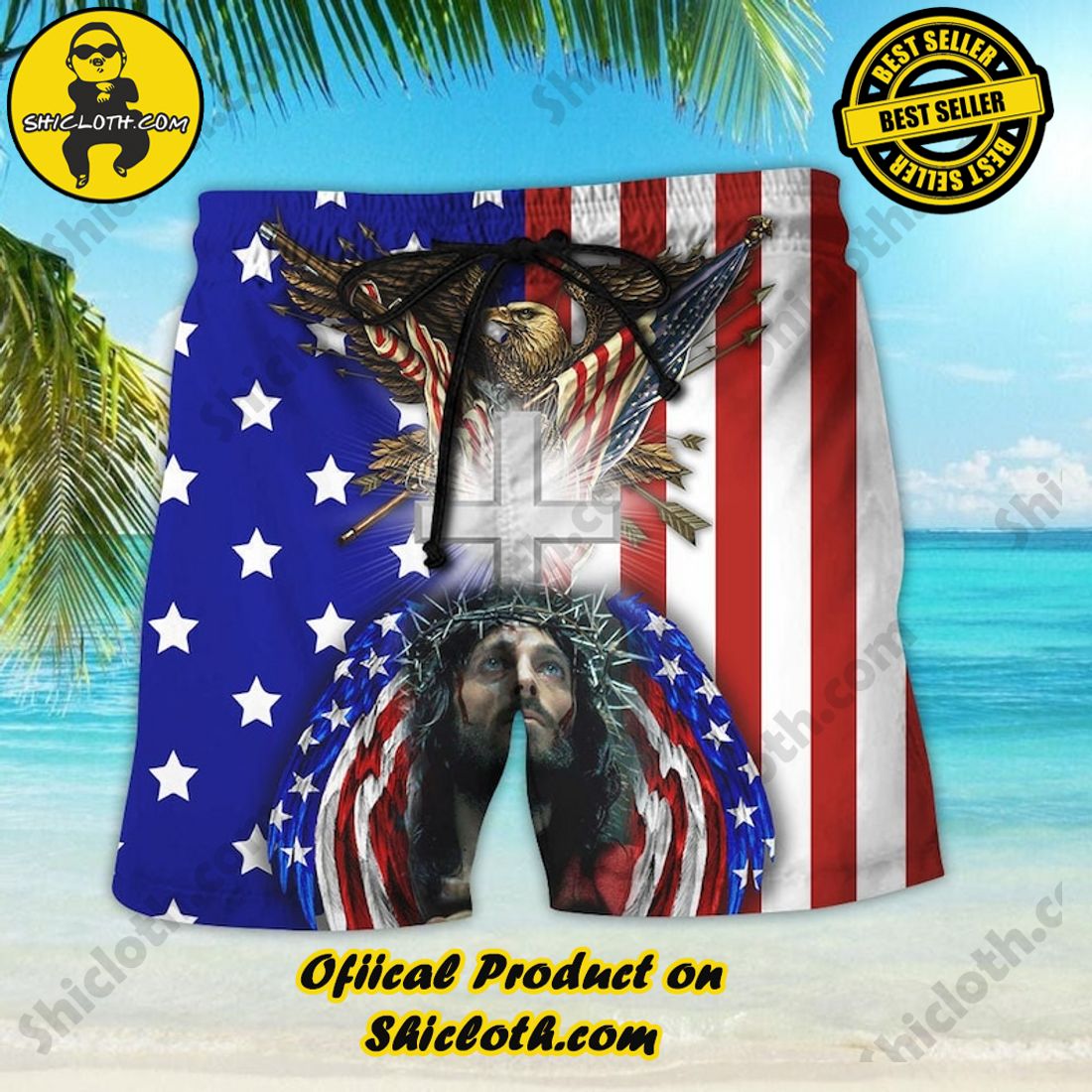 America Patriotic Eagle Aloha Hawaiian Shirt Beach Short
