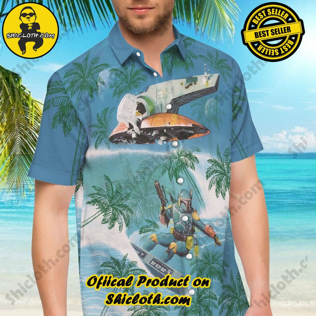 Boba Fett Surf Star Wars Palm Tree Green Hawaiian Shirt