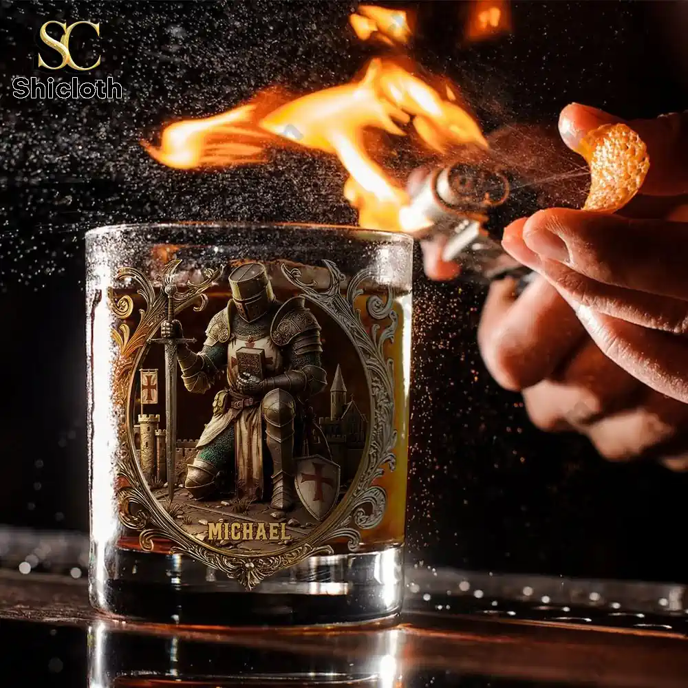 Kneeling Crusader Knight With Sword & Bible Personalized Whiskey Glass