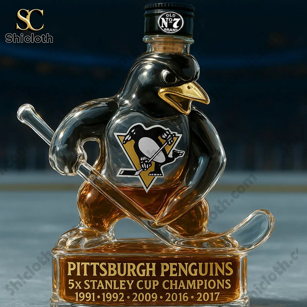 Pittsburgh Penguins 5x Stanley Cup Champs Whiskey Bottle