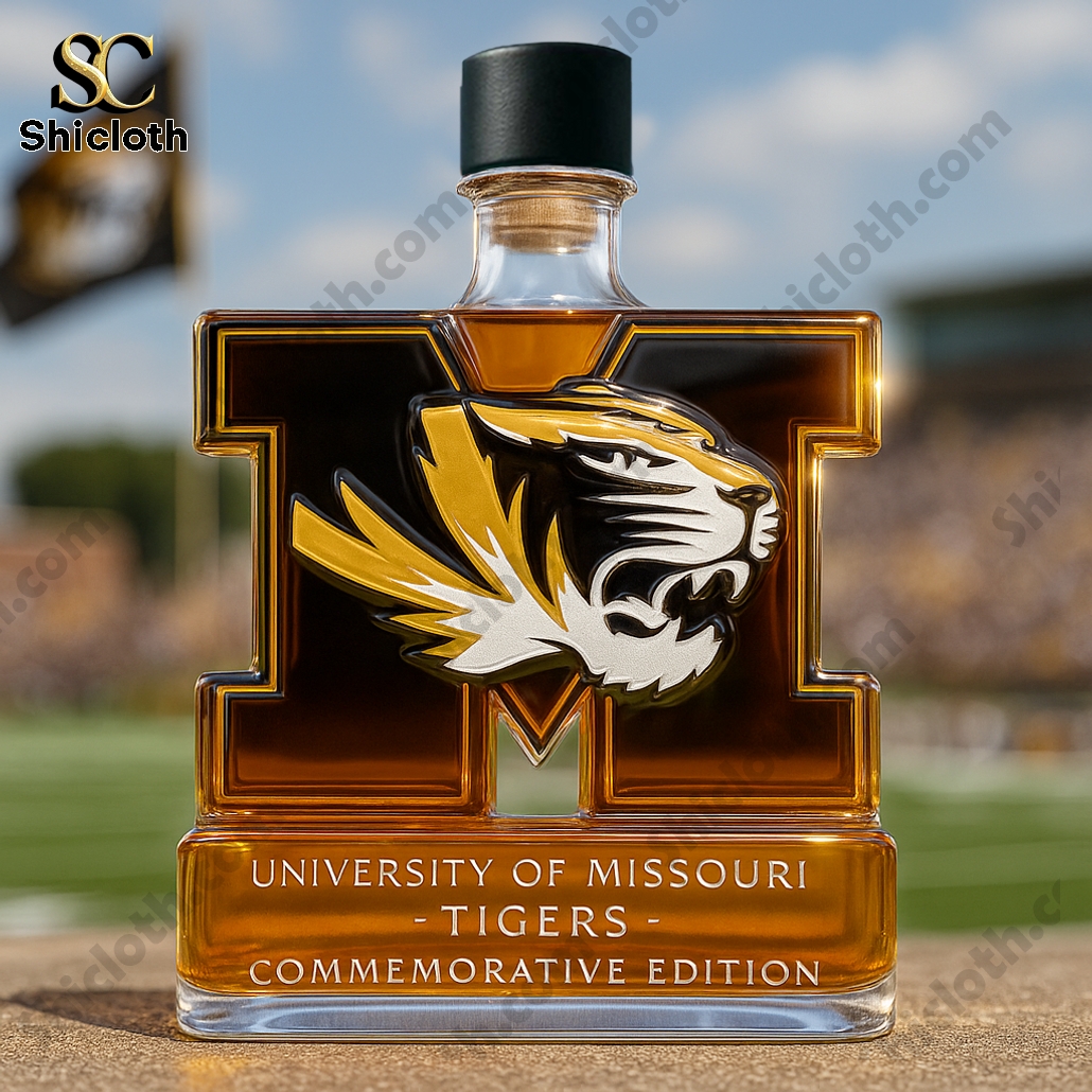 Black & Gold Roar Mizzou Tigers Crest Whiskey Bottle