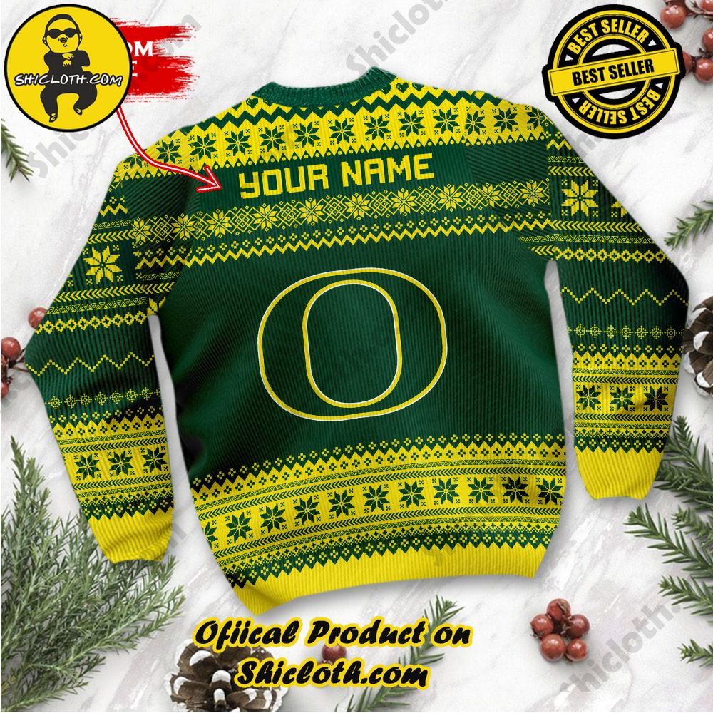 NCAA Oregon Ducks Ho Ho Ho Custom Name Ugly Christmasl Sweater