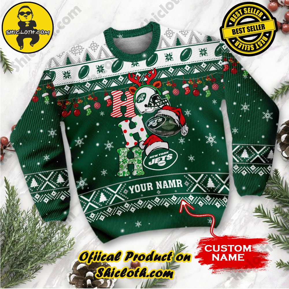 NFL New York Jets Ho Ho Ho Custom Name Ugly Christmas Sweater
