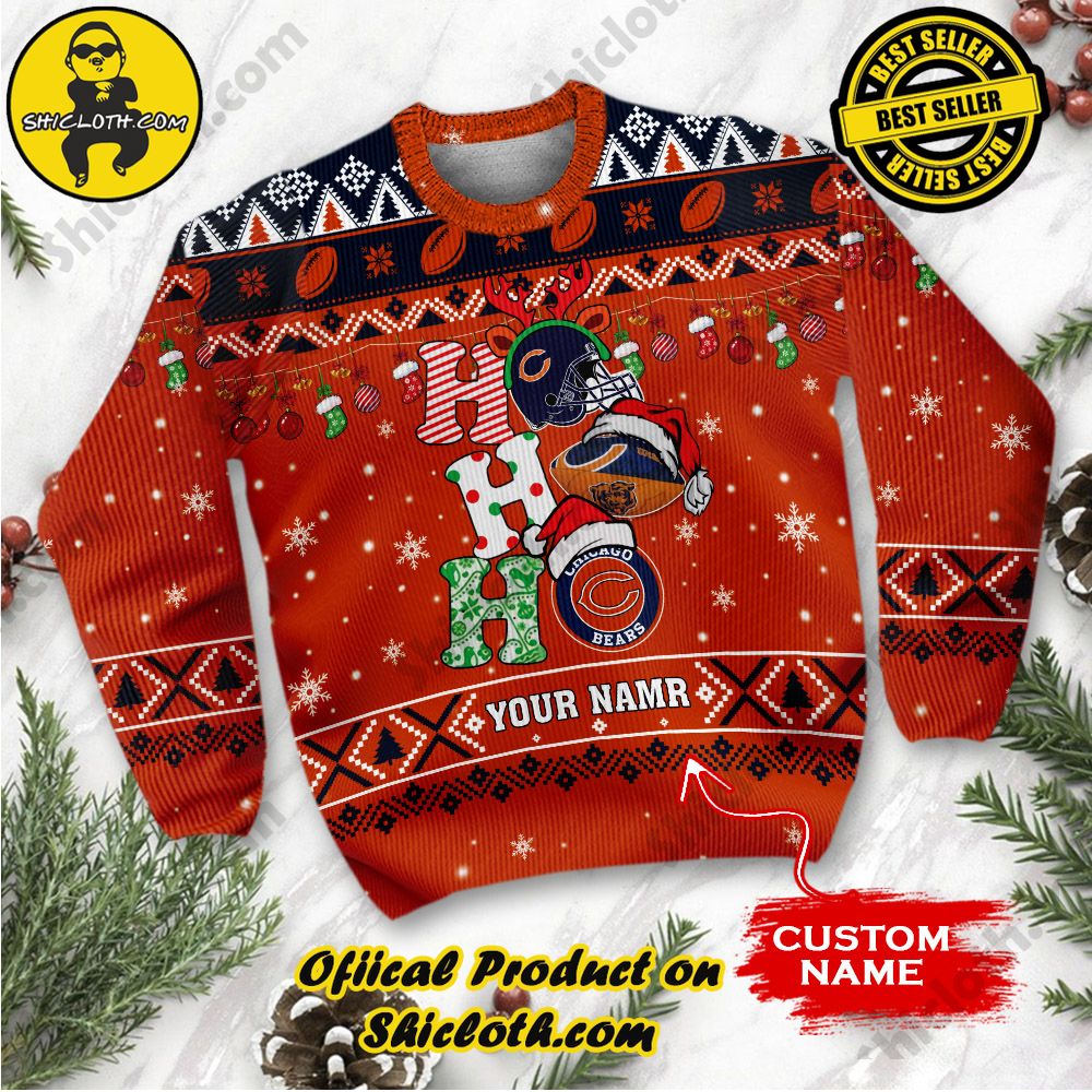 NFL Chicago Bears Ho Ho Ho Custom Name Ugly Wool Sweater