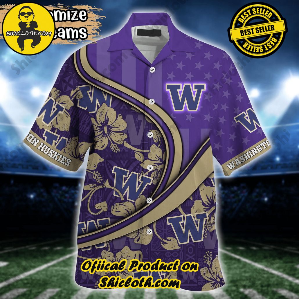Washington Huskies NCAA Us Flag Hawaiian Shirt Custom Summer Aloha Shirt