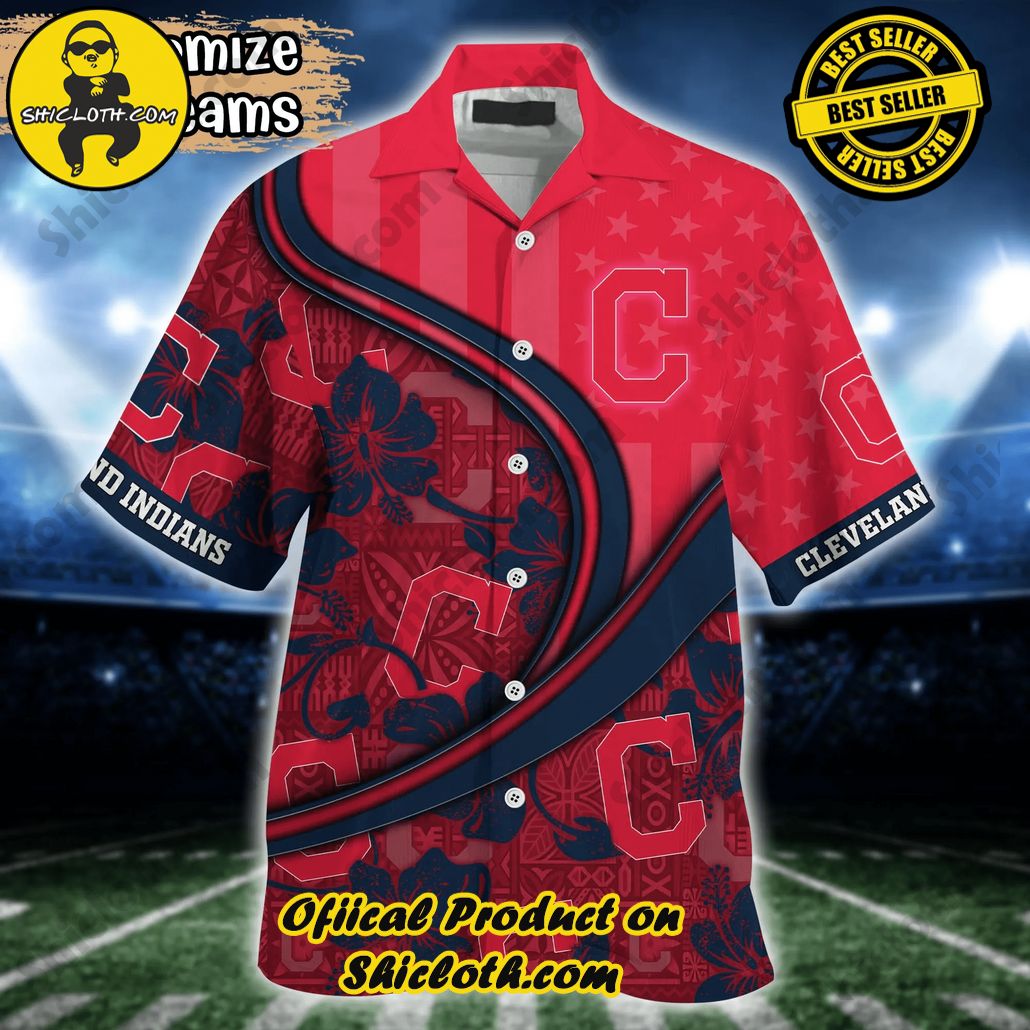 Cleveland Indians MLB Us Flag Hawaiian Shirt Custom Summer Aloha Shirt